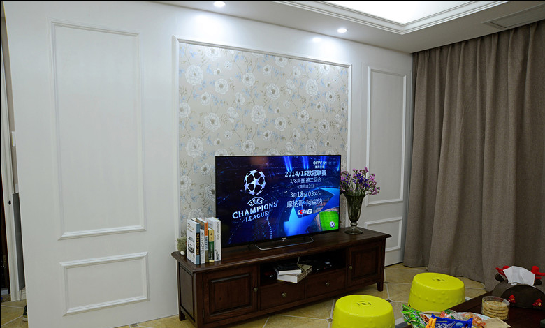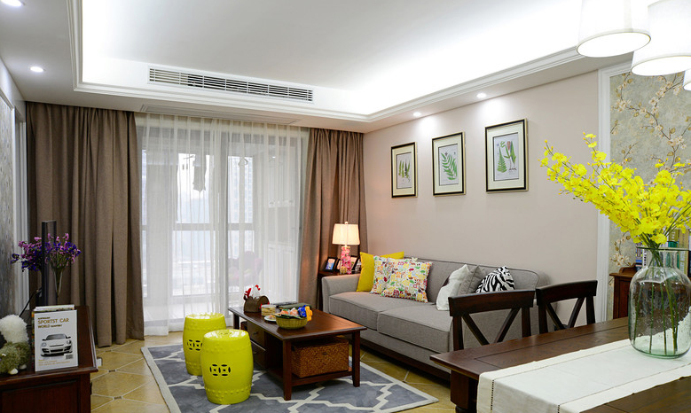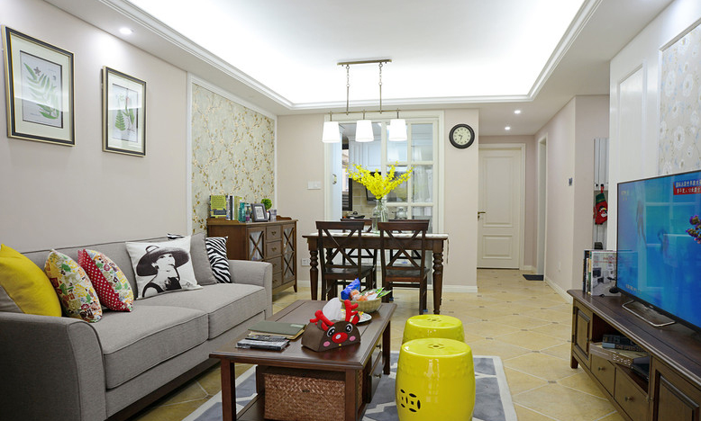 设计说明:美式乡村风格摒弃了繁琐和奢华,并将不同风格中的优秀元素汇集融合,以舒适机能为导向,强调“回归自然”,使这种风格变得更加轻松、舒适。美式乡村风格突出了生活的舒适和自由,不论是感觉笨重的家具,还是带有岁月沧桑的配饰,都在告诉人们这一点。特别是在墙面色彩选择上,自然、怀旧、散发着浓郁泥土芬芳的色彩是美式乡村风格的典型特征。美式乡村风格的色彩以自然色调为主,绿色、土褐色最为常见;壁纸多为纯纸浆质地;家具颜色多仿旧漆,式样厚重;