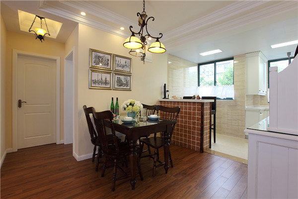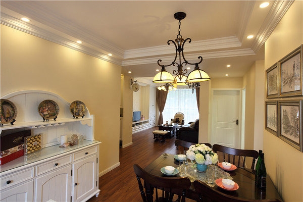 设计说明:摒弃了繁琐和奢华,并将不同风格中的优秀元素汇集融合,以舒适机能为导向,强调“回归自然”,使这种风格变得更加轻松、舒适。美式乡村风格突出了生活的舒适和自由,不论是感觉笨重的家具,还是带有岁月沧桑的配饰,都在告诉人们这一点。特别是在墙面色彩选择上,自然、怀旧、散发着浓郁泥土芬芳的色彩是美式乡村风格的典型特征。美式乡村风格的色彩以自然色调为主,绿色、土褐色最为常见;壁纸多为纯纸浆质地;家具颜色多仿旧漆,式样厚重;