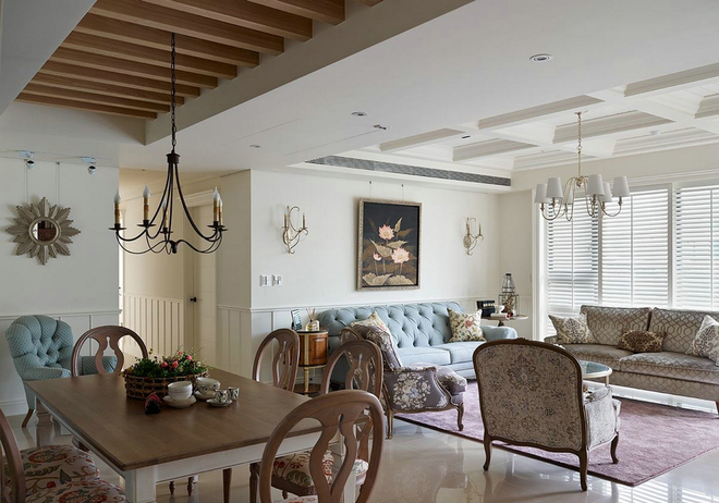 设计说明:美式乡村风格摒弃了繁琐和奢华,并将不同风格中的优秀元素汇集融合,以舒适机能为导向,强调“回归自然”,使这种风格变得更加轻松、舒适。美式乡村风格突出了生活的舒适和自由,不论是感觉笨重的家具,还是带有岁月沧桑的配饰,都在告诉人们这一点。特别是在墙面色彩选择上,自然、怀旧、散发着浓郁泥土芬芳的色彩是美式乡村风格的典型特征。美式乡村风格的色彩以自然色调为主,绿色、土褐色最为常见;壁纸多为纯纸浆质地;家具颜色多仿旧漆,式样厚重!