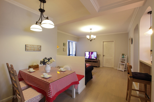 设计说明:美式乡村风格摒弃了繁琐和奢华,并将不同风格中的优秀元素汇集融合,以舒适机能为导向,强调“回归自然”,使这种风格变得更加轻松、舒适。美式乡村风格突出了生活的舒适和自由,不论是感觉笨重的家具,还是带有岁月沧桑的配饰,都在告诉人们这一点。特别是在墙面色彩选择上,自然、怀旧、散发着浓郁泥土芬芳的色彩是美式乡村风格的典型特征。美式乡村风格的色彩以自然色调为主,绿色、土褐色最为常见;壁纸多为纯纸浆质地;家具颜色多仿旧漆,式样厚重;