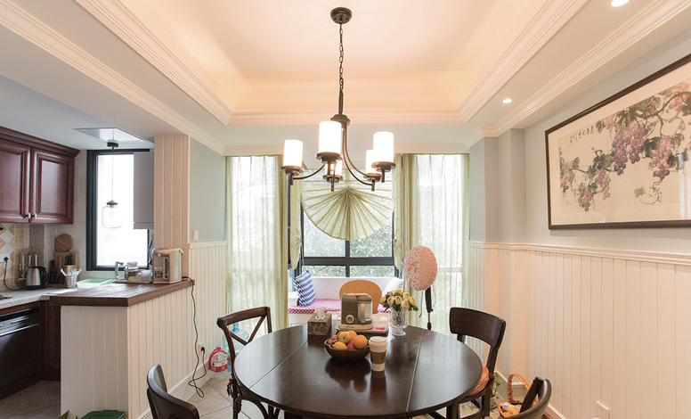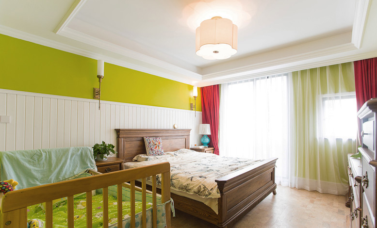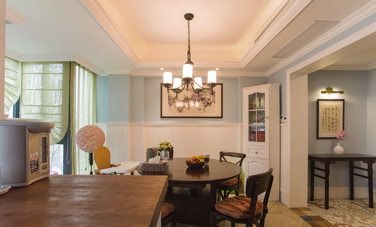 设计说明:美式乡村风格摒弃了繁琐和奢华,并将不同风格中的优秀元素汇集融合,以舒适机能为导向,强调“回归自然”,使这种风格变得更加轻松、舒适。美式乡村风格突出了生活的舒适和自由,不论是感觉笨重的家具,还是带有岁月沧桑的配饰,都在告诉人们这一点。特别是在墙面色彩选择上,自然、怀旧、散发着浓郁泥土芬芳的色彩是美式乡村风格的典型特征。美式乡村风格的色彩以自然色调为主,绿色、土褐色最为常见;壁纸多为纯纸浆质地;家具颜色多仿旧漆,式样厚重;