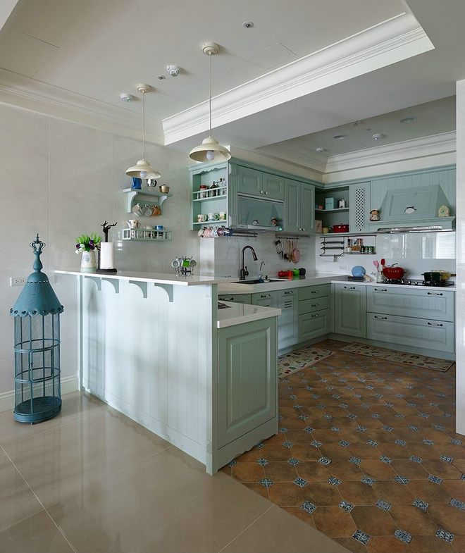 设计说明:美式乡村风格摒弃了繁琐和奢华,并将不同风格中的优秀元素汇集融合,以舒适机能为导向,强调“回归自然”,使这种风格变得更加轻松、舒适。美式乡村风格突出了生活的舒适和自由,不论是感觉笨重的家具,还是带有岁月沧桑的配饰,都在告诉人们这一点。特别是在墙面色彩选择上,自然、怀旧、散发着浓郁泥土芬芳的色彩是美式乡村风格的典型特征。美式乡村风格的色彩以自然色调为主,绿色、土褐色最为常见;壁纸多为纯纸浆质地;家具颜色多仿旧漆,式样厚重!