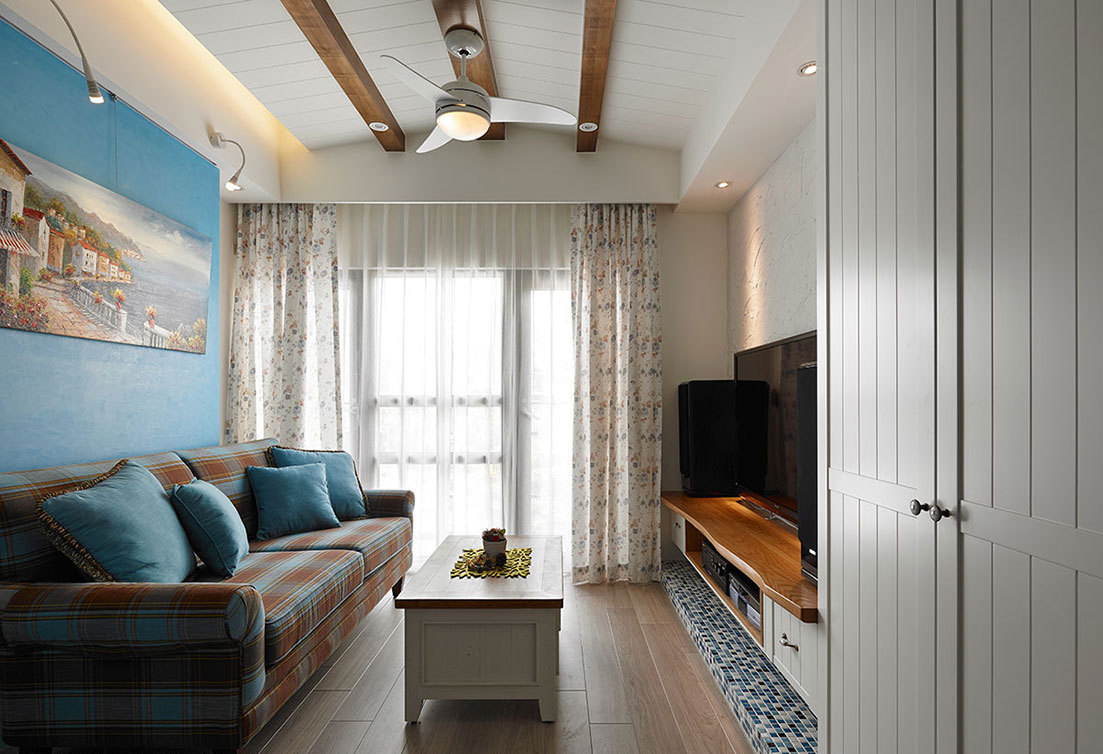 4.鲜明的装饰手法:不管是地中海家具还是地中海的装饰,都有其鲜明的特征,家具采用低彩度线条简单且修边浑圆的木质家具;地面的装饰多为陶或者石板;室内的装饰大多以彩度色调和棉织品为主;搭配一些做旧的风格的小饰物,自然明亮。