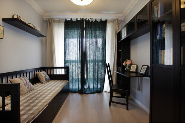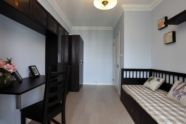 设计说明:美式乡村风格摒弃了繁琐和奢华,并将不同风格中的优秀元素汇集融合,以舒适机能为导向,强调“回归自然”,使这种风格变得更加轻松、舒适。美式乡村风格突出了生活的舒适和自由,不论是感觉笨重的家具,还是带有岁月沧桑的配饰,都在告诉人们这一点。特别是在墙面色彩选择上,自然、怀旧、散发着浓郁泥土芬芳的色彩是美式乡村风格的典型特征。美式乡村风格的色彩以自然色调为主,绿色、土褐色最为常见;壁纸多为纯纸浆质地;家具颜色多仿旧漆,式样厚重;