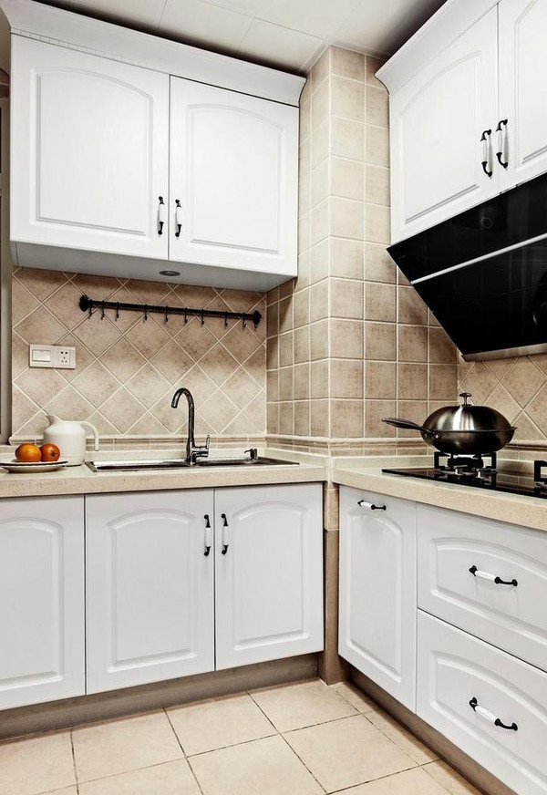 1、水槽与灶台之间要留有面积足够大的操作台。